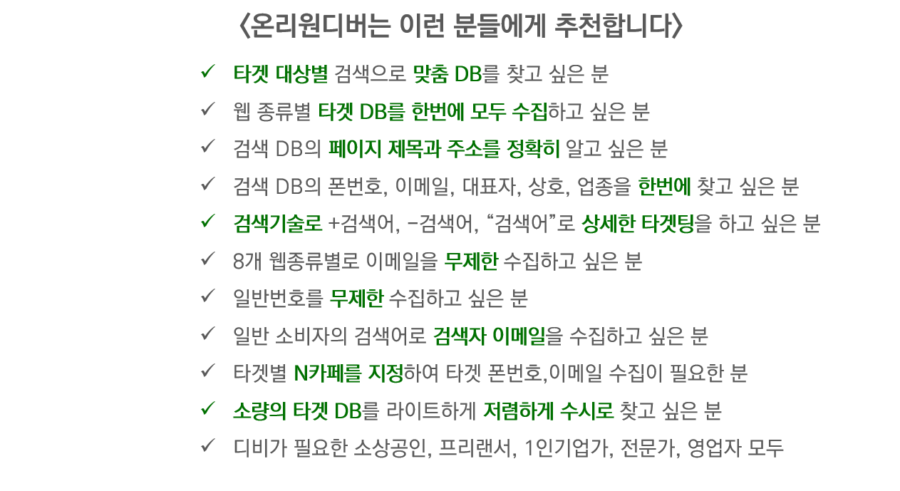 알고리즘을 통해 타겟에 맞는 맞춤 DB로 추출하는 합법적인 프로그램입니다.